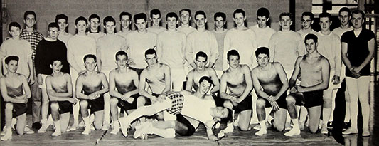 | The students who had wrestled before helped organize the practice schedule and run drills. Those that had wrestled before were the following: from Greenville, Mark Reichard a sophomore, Larry Uber a sophomore (a Section Champ the year before) and Bucky Moffet a Junior (he was Reynolds' first Section & District Champ); from Jamestown, Ralph Grady a senior (a Distrist 10 Champ at 95 pounds two years earlier), Terry Groover a junior and Stan McCright a senior. |